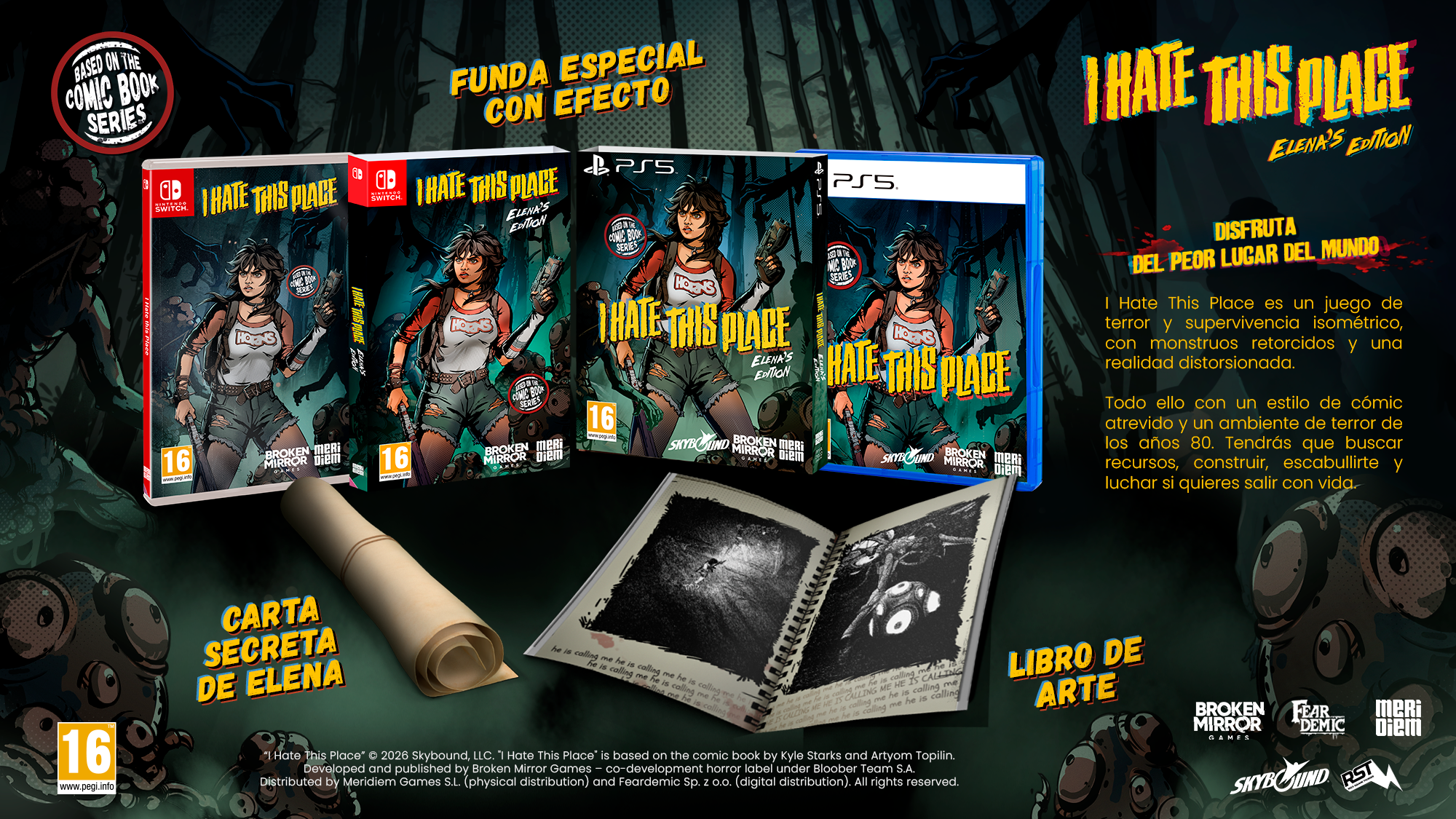 La Elena’s Edition de I Hate This Place será la única edición física disponible durante el periodo de lanzamiento. Diseñada y fabricada por Meridiem, esta edición incluirá, junto al juego, una funda especial exclusiva, una carta secreta de la protagonista Elena y un libro de arte en físico.