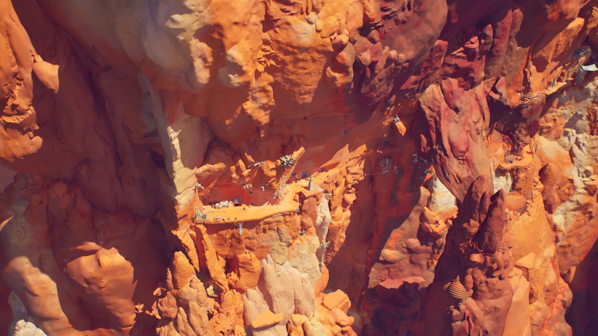 Más allá de las mecánicas asociadas al personaje, Jusant incluye determinadas variables circunstanciales que se van introduciendo con el avance de los capítulos, refrescando la experiencia poco a poco. Así, en una zona tendremos que prestar atención al viento, mientras que en otra el sol mermará la resistencia. Esto, a su vez, se aprovecha para producir cambios visuales abismales, permitiéndonos recorrer secciones completamente diferentes de la torre que, como podéis apreciar en las fotografías que acompañan estos párrafos, se caracterizan por su estética. Y es que Jusant es un mood. Puedes jugar sin pensar mucho, pero si te metes de lleno en su ambientación, se disfruta enormemente. El silencio, que predomina durante las secciones jugables, solo se interrumpe por los sonidos de los bichejos que pueblan el lugar o por el jadeo de nuestro protagonista cada vez que realiza un esfuerzo. Esto genera un viaje casi introspectivo, como Journey. Sin embargo, las sensaciones de Shadow of the Colossus frente a la magnificencia de todo a nuestro alrededor también están ahí.