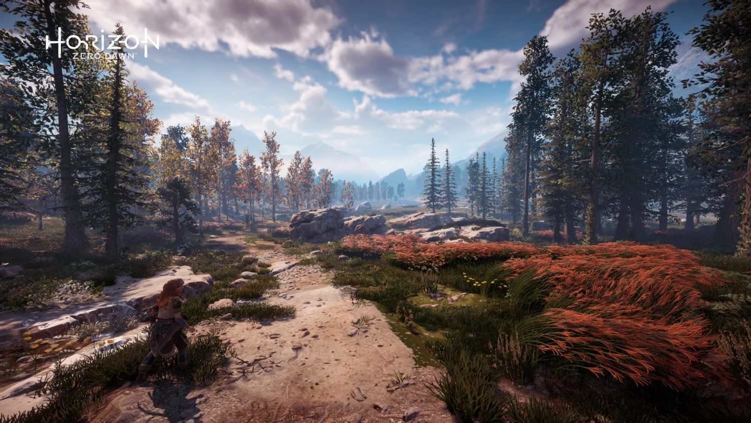 Horizon Zero Dawn es – como The Last of Us – uno de los referentes visuales, en este caso de la generación de PlayStation 4 y Xbox One. El juego nos presenta otro mundo post apocalíptico y con ello se repiten elementos vistos en TLOU. Vuelven las plantas, los árboles y las flores. Sin embargo, aparecen diferentes. La cantidad de vegetación aumenta considerablemente hasta borrar esos molestos tramos de espacios vacíos consecuencia de la potencia de los sistemas de ese momento. Lo verde se apodera aún más del paisaje. Y no solo experimentamos más cantidad de vegetación, sino también una mayor calidad. A la clásica maleza, Guerrilla suma una flora diversa con estructuras grandes y hasta de diferentes colores. Además, el avance gráfico contribuye a un aumento en el detalle de una vegetación movible gracias al viento. Con estas mejoras, el estudio es capaz de crear un mundo más vivo.